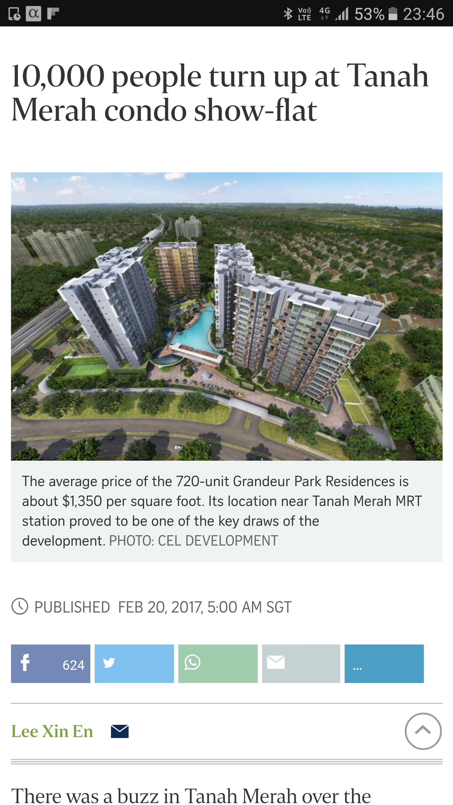 And it says there : 10000 people appeared at Tanah Merah Condo Show Flat. And within the article, it was stated that it occurred over a period of 2 days. Read on further and you will find that the journalist is referring to Chip Eng Seng’s development, Grandeur Park Residences. So the title of the article chosen by the journalist was intentional, in a sense, so as not to sound like he or she was endorsing the development.